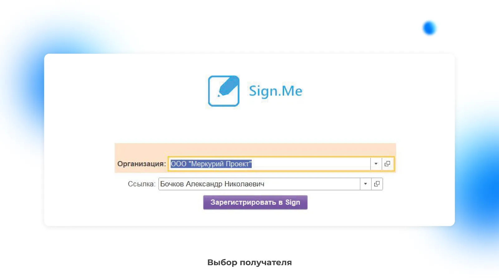 Выбрать получателя.