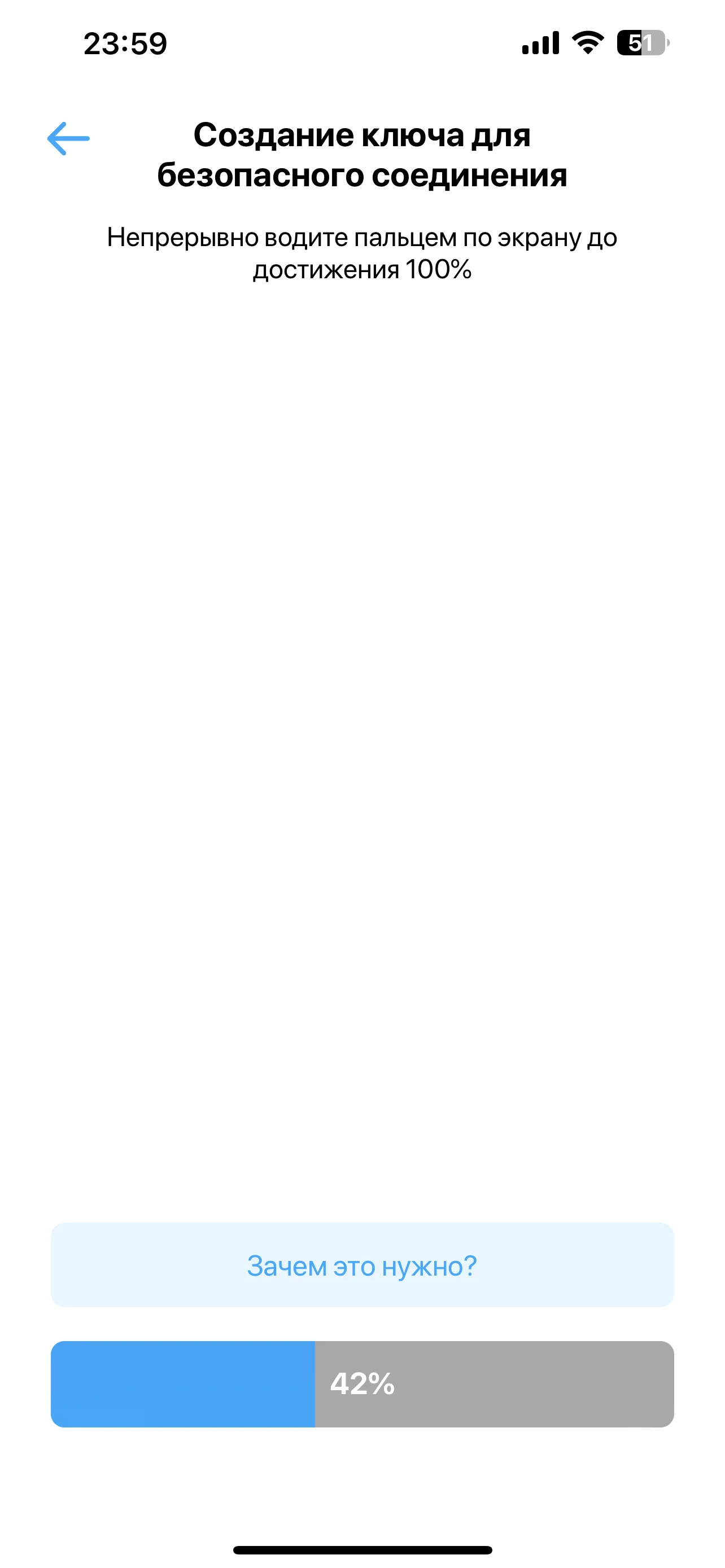 Повторное перемещение пальца по экрану создает случайное число, которое будет зашифровано. Это обезопасит ваш приватный ключ от доступа к нему извне и от компрометации электронной подписи.