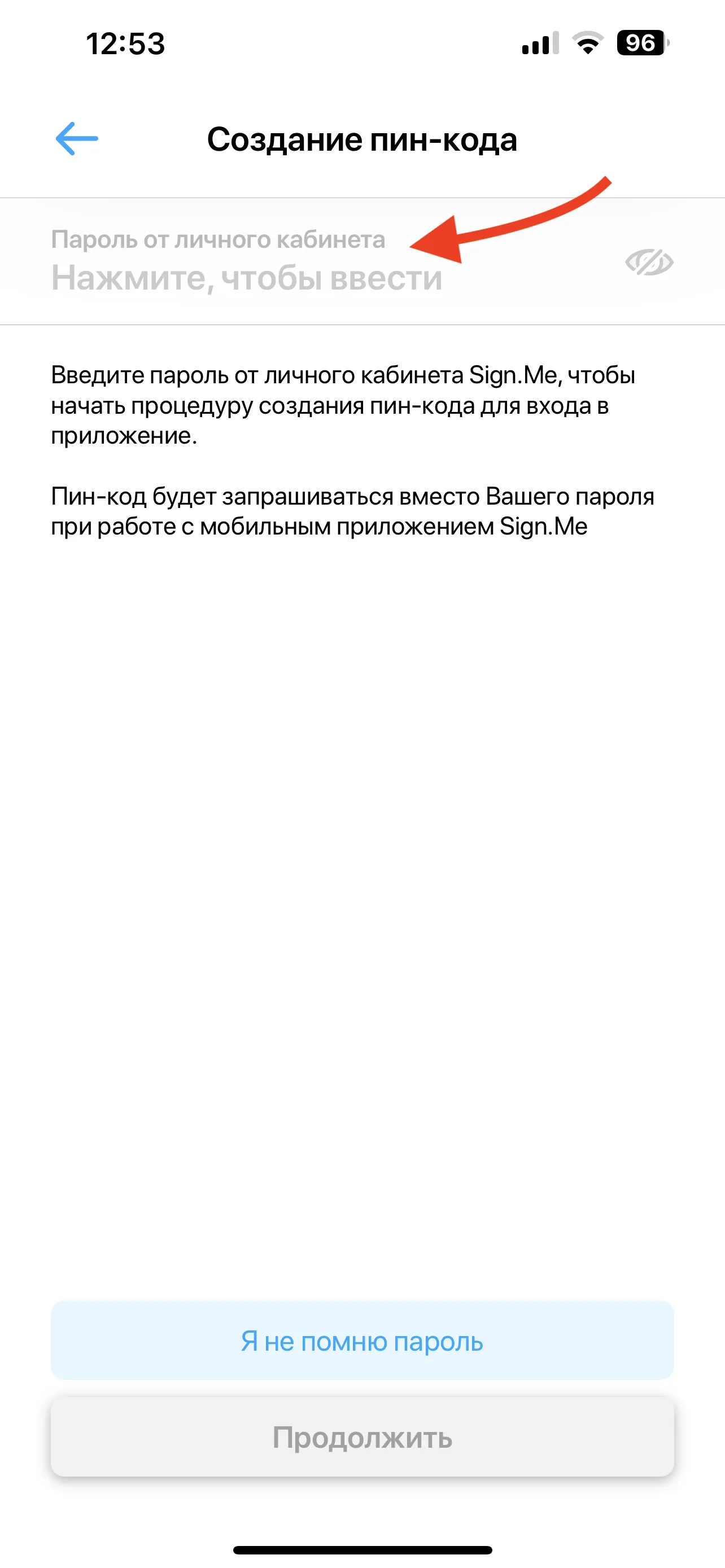 13. Откройте мобильное приложение Sign.Me и авторизуйтесь с помощью ПИН-кода